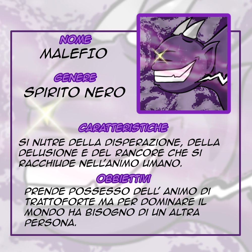 Ho creato Malefio tanti, tanti anni fa. Un mostrone grande e grosso che cerca di invadere l’animo di Trattoforte e allo stesso tempo di Puccina. Riuscirà nel suo intento? Sarà davvero Tratto il suo obbiettivo? Scopritelo collezionando i miei fumetti! Lunedì 27 giugno uscirà il volume 2 di Trattoforte e Puccina! Mica vorrete dire no a Malefio?😈