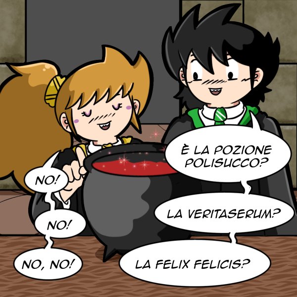 Si torna a Hogwarts! Puccina sta preparando una pozione! Non è difficile immaginare di cosa si tratti! Credo che Piton toglierà 5 punti a Grifondoro per la disgustevole mielaggine di Puccina!🤣