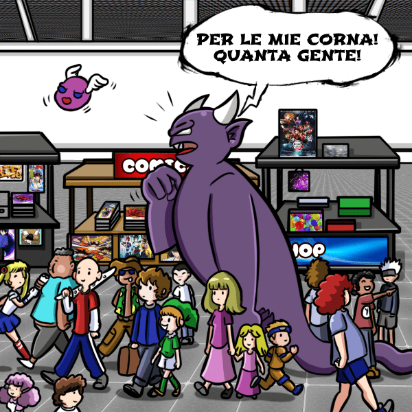 Come previsto i nostri amici trovano il modo di intrufolarsi nel padiglione e… creare un vero scompiglio! Cominciamo a capire perché le fiere cerchino di tenere a freno i nostri tipi immaginari!😅