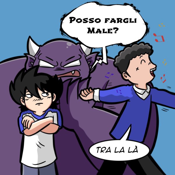 Ogni tanto Malefio si diverte a rompermi le scatole tentando di farmi credere di non essere in grado di far le cose o di non essere mai all’altezza della situazione! Per fortuna c’è chi vigila su di me rimettendolo in riga! Quindi raga, se vi sentite giù, senza fiducia in voi stessi è un demonietto come Malefio a farvelo credere e dovrete zittirlo con un bel pugnone o circondarvi dell’affetto di chi avete intorno!😊