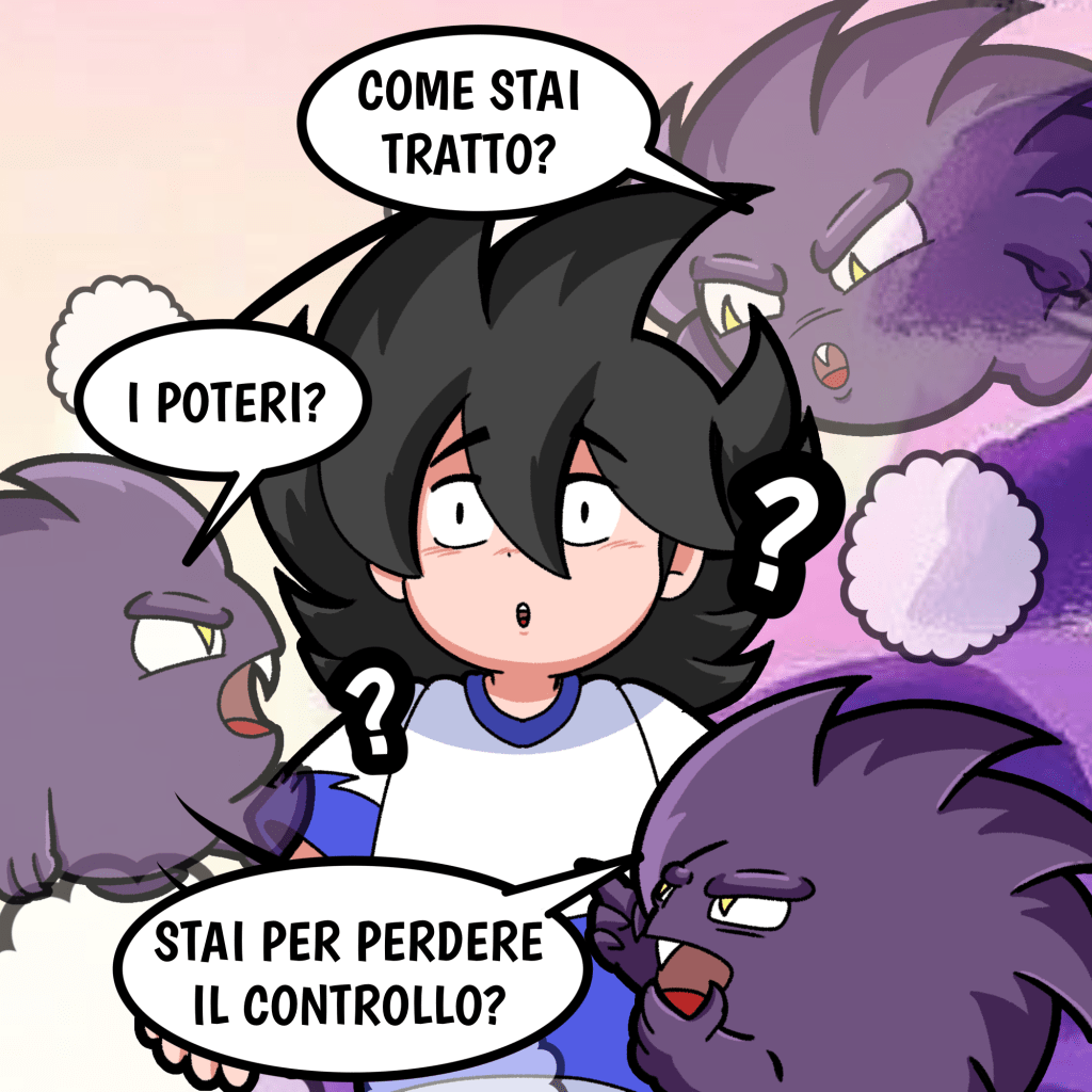 Che putiferio! Questo strano essere è piombato addosso ai nostri amici cosi di botto! Sto brutto coso!