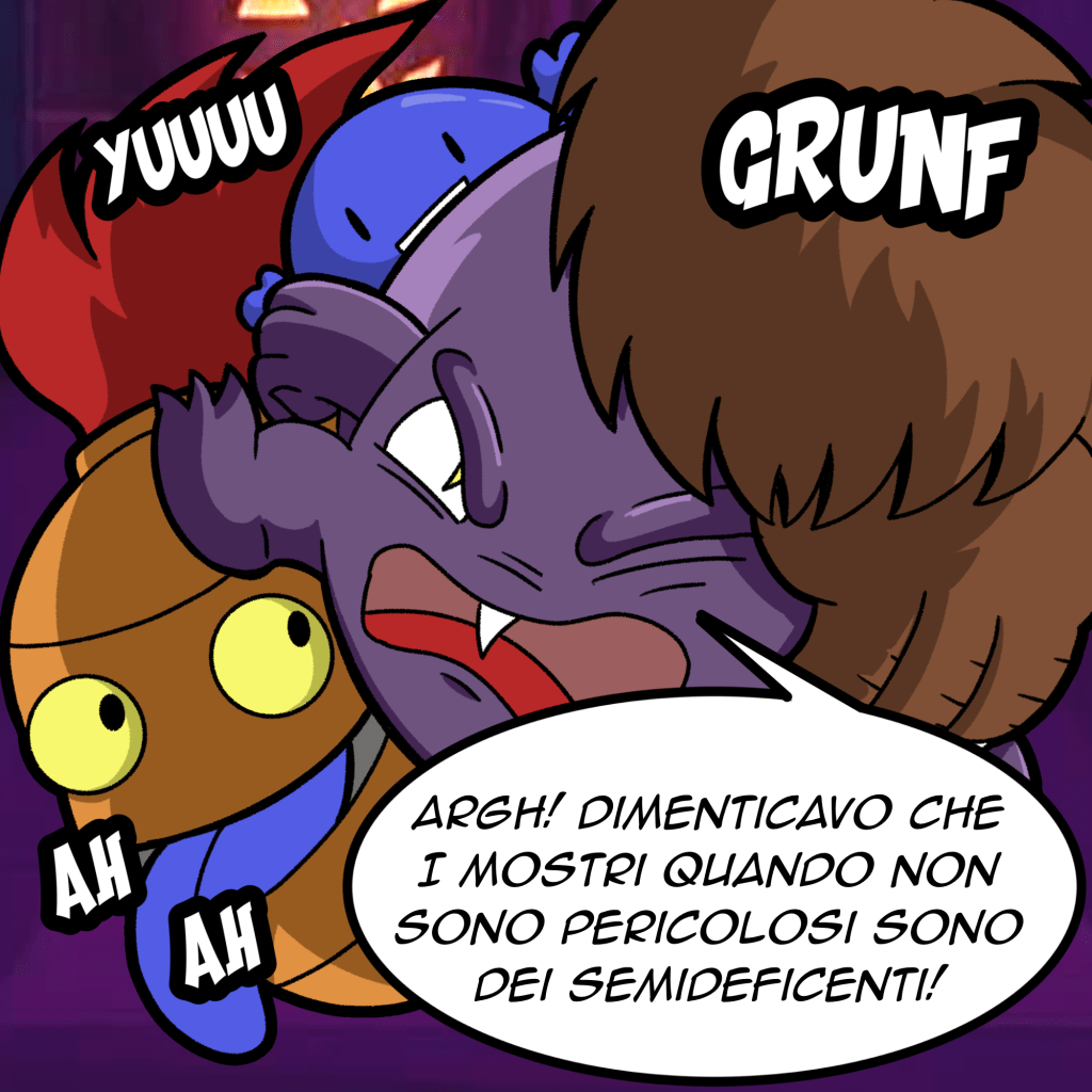 Fiuuu questi mostri sono cosi mostruosamente… amichevoli per fortuna! E… e chi cavolo è quel gigante che ci chiede di entrare in classe? Argh!