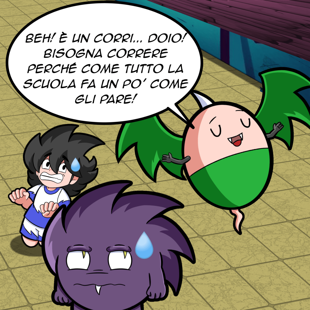 Fiuuu questi mostri sono cosi mostruosamente… amichevoli per fortuna! E… e chi cavolo è quel gigante che ci chiede di entrare in classe? Argh!