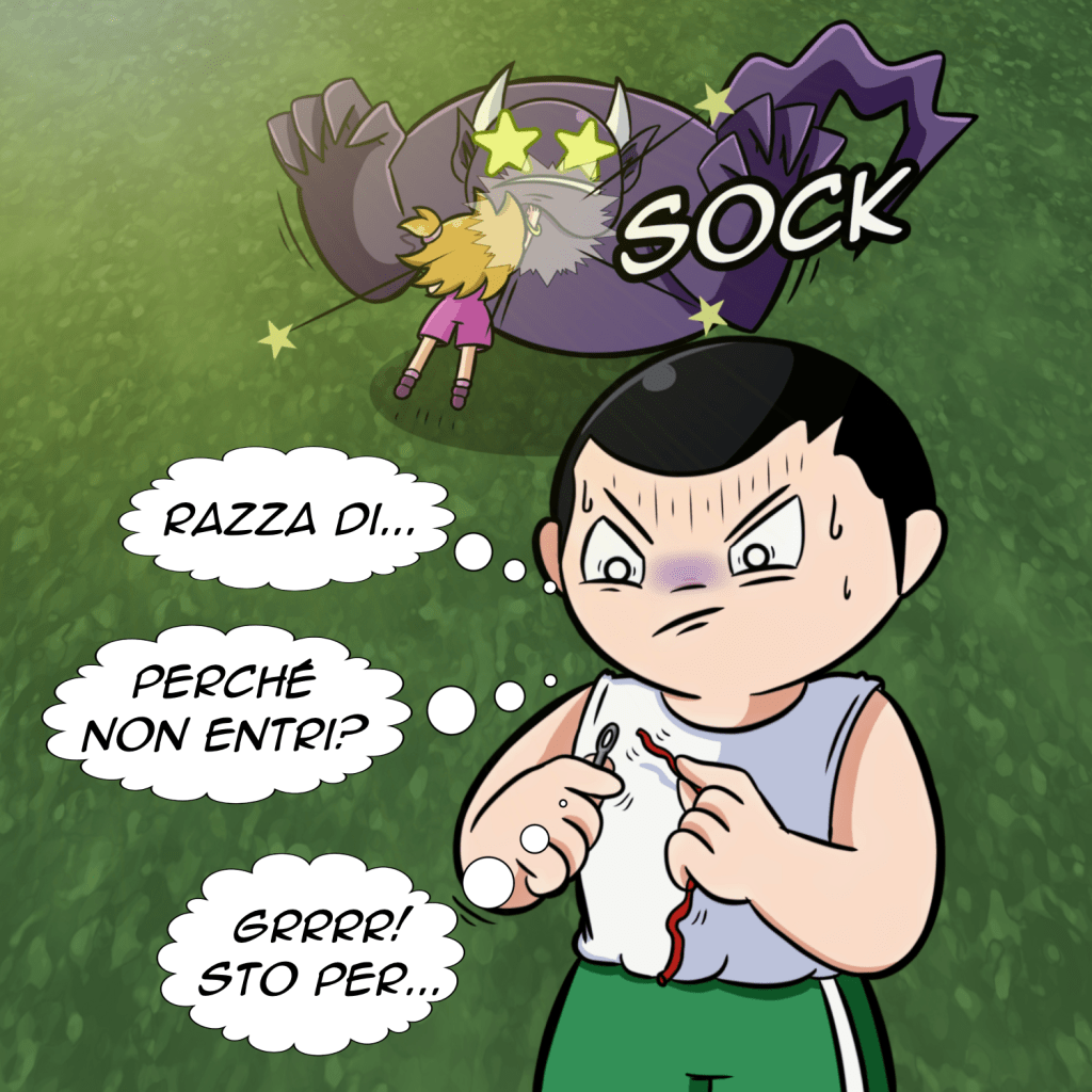 Ehi! I ragazzi ci sono giร tutti! Sono stato l’ultimo ad arrivare! Chi mi sta venendo incontro? Ah, รจ Puccina… uh?ย PUCCINA??? ARGH!