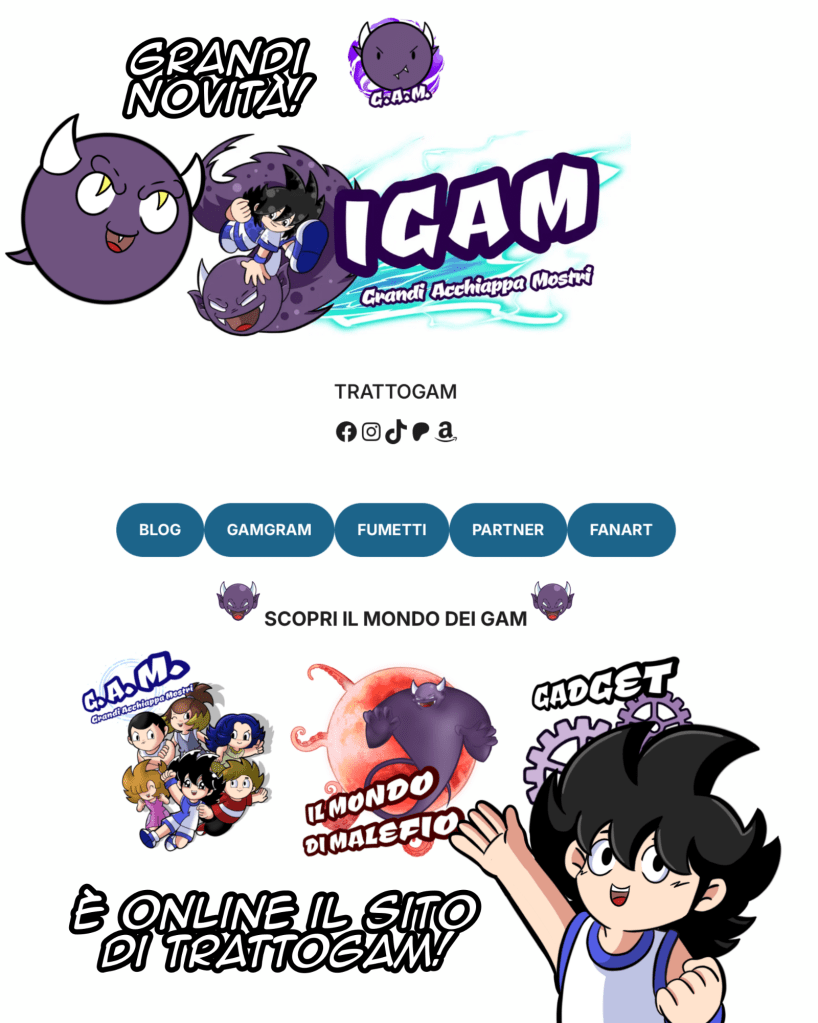 Una super, extra, iper, mega, ultra novitร ! ร online il sito-server ufficiale dei GAM! Il portale avrร i fumetti della serie, le curiositร e gli aggiornamenti sul gruppo dei cacciatori di mostri piรน simpatici del mondo! Ora non vi resta che andare su http://www.trattogam.com e iscrivervi alla newsletter per non perdervi nulla del mondo di Tratto e Company! YEAH!