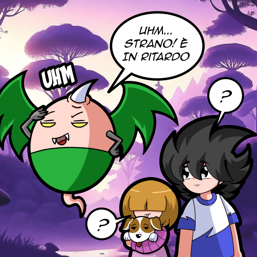 Che putiferio! Questo strano essere è piombato addosso ai nostri amici cosi di botto! Sto brutto coso!